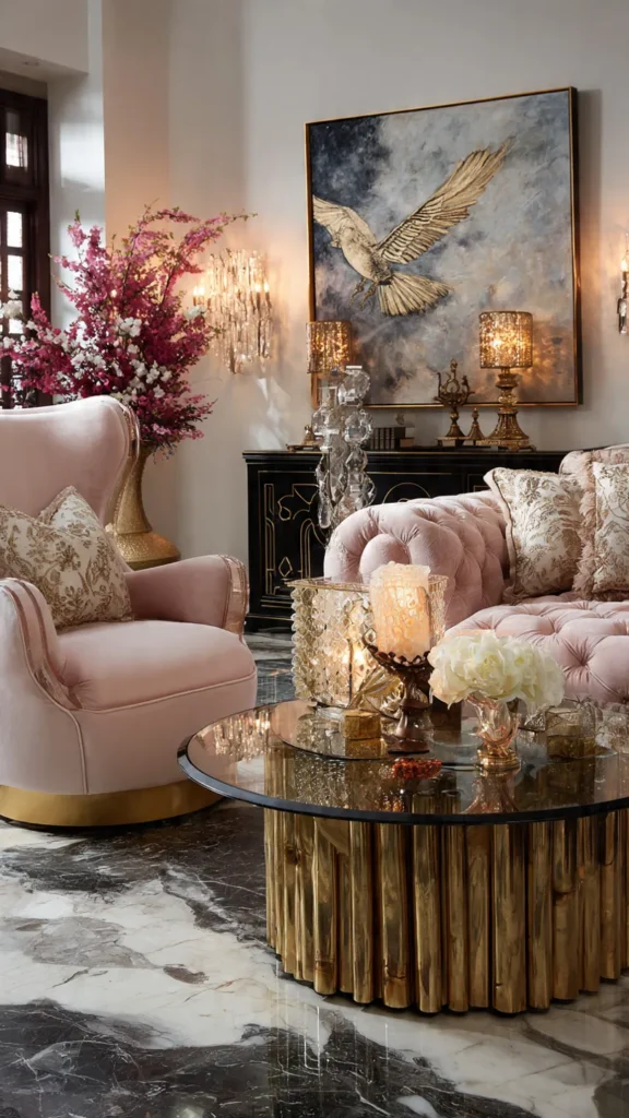 - Textures: Velvet sofas, mirrored surfaces, and marble tabletops add that luxurious touch that makes any room feel cinematic.
