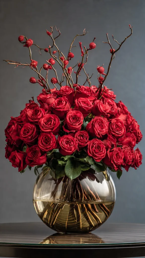 Luxury arrangements use high-quality roses, exotic greenery, designer wrapping, crystal vases, or other opulent touches to create a statement gift.