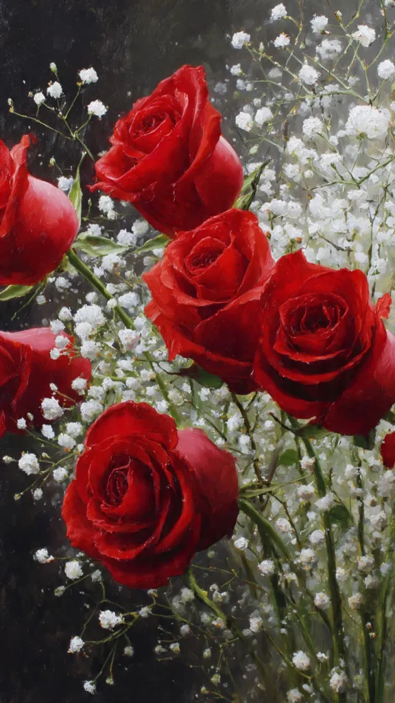 Baby’s Breath adds volume, texture, and a delicate touch, enhancing the beauty of red roses and creating a classic, elegant combination.