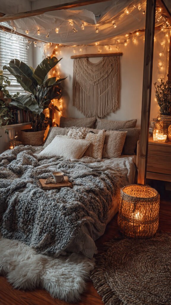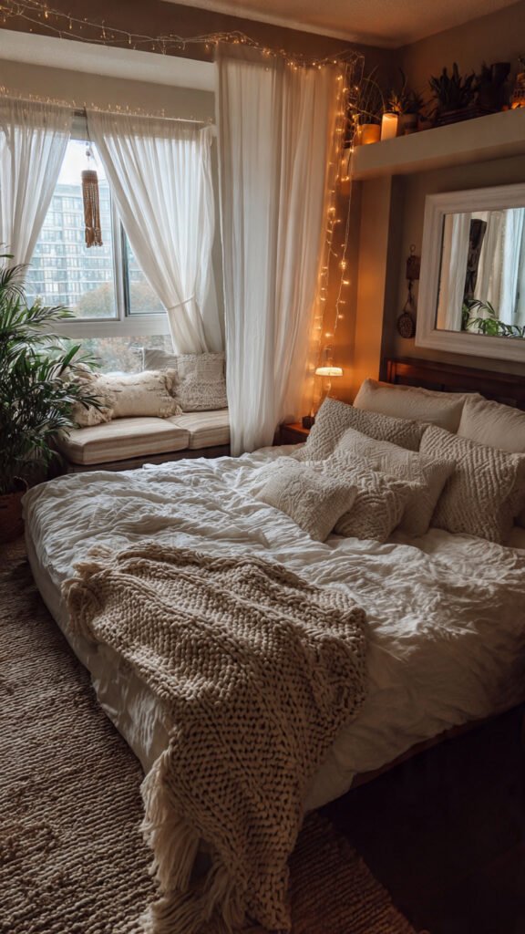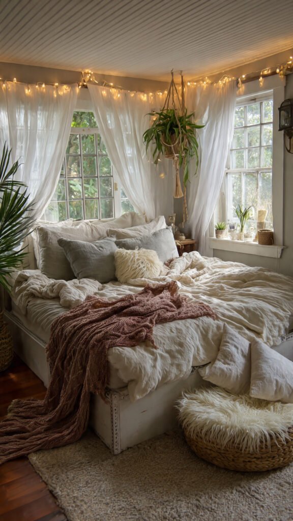Romantic Bedroom Ideas focus on creating a warm, intimate, and emotionally comforting space using soft colors, cozy textures, and relaxing lighting.