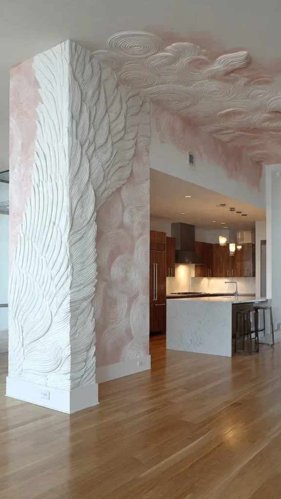 - Textured walls with wood, stone, or 3D panels.