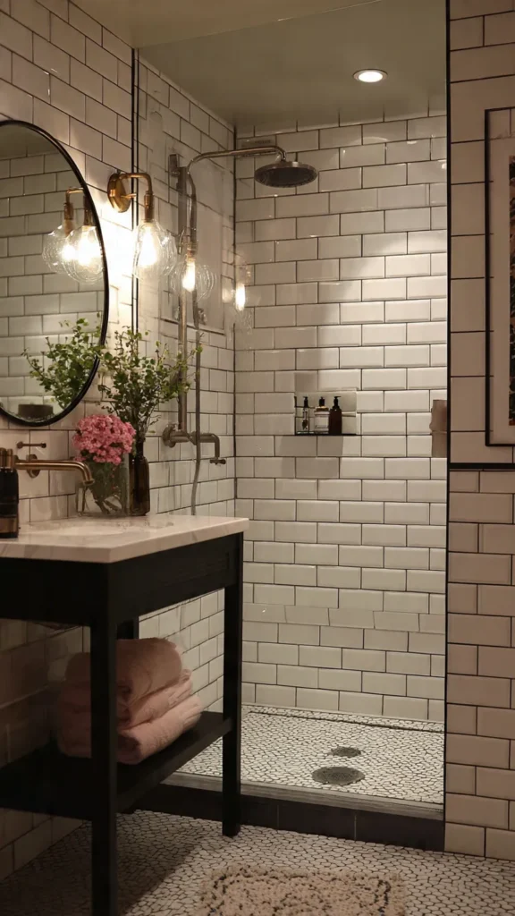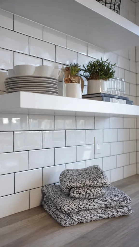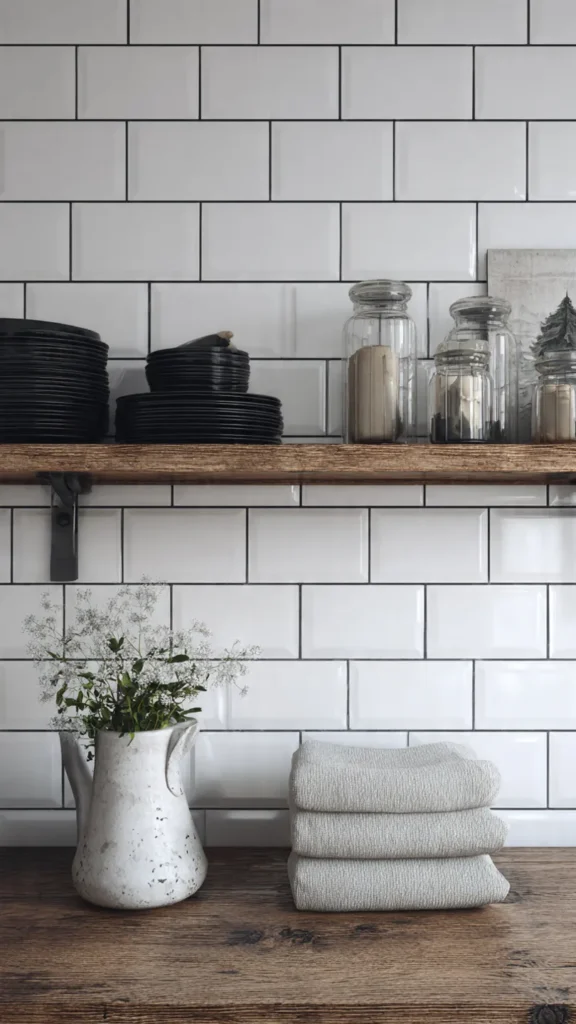 White tiles are a Scandinavian classic. White subway tiles with dark grout accents create visual interest while keeping the space bright and timeless.