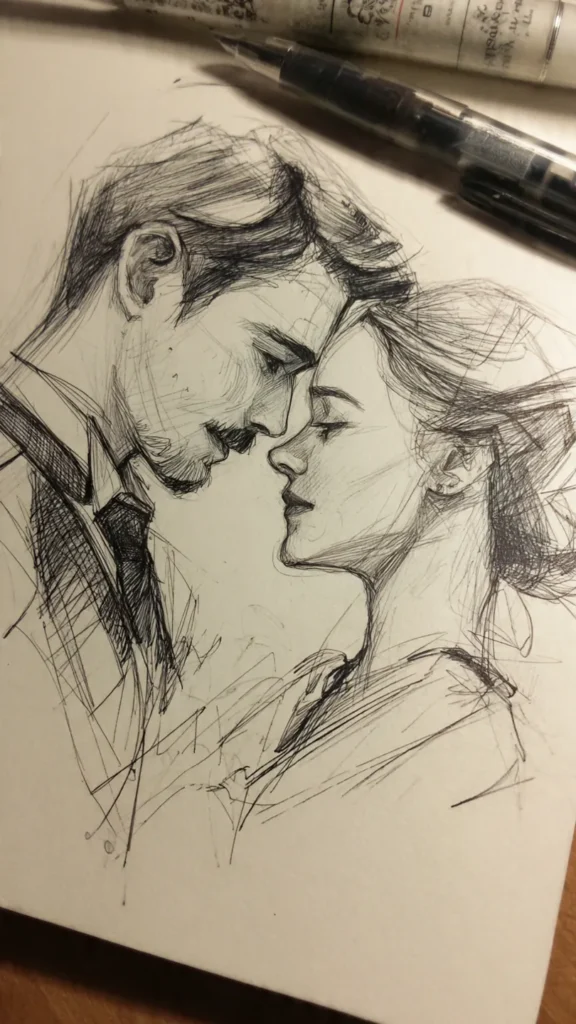 Couple sketches are not about perfection but about emotion. Pay attention to eyes, smiles, and gestures.