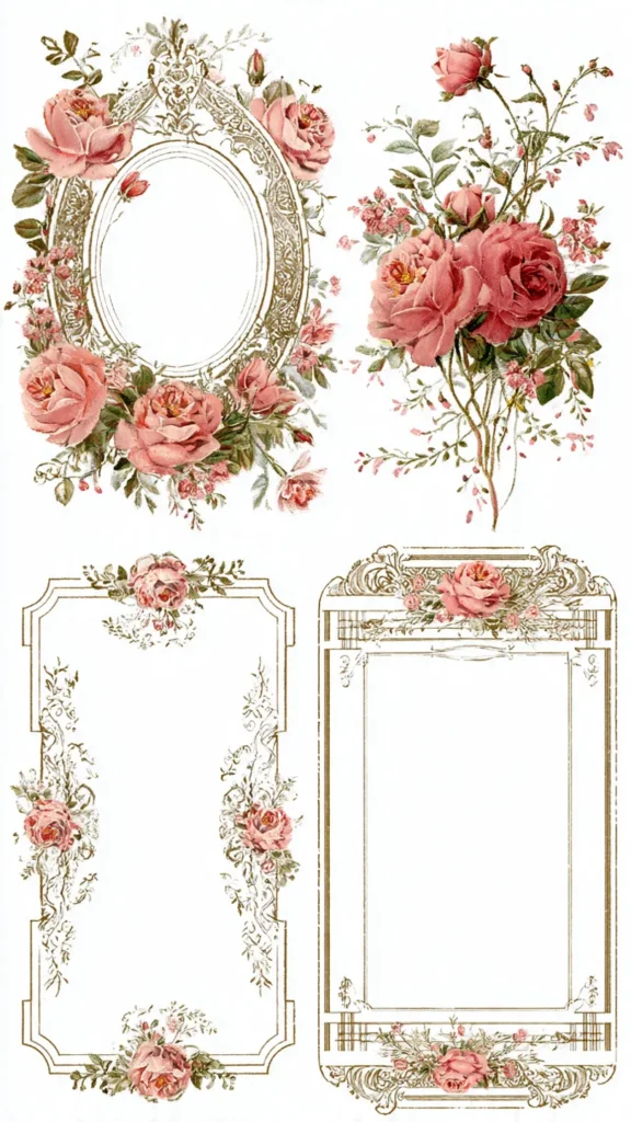 Choose muted color palettes such as beige, sepia, dusty rose, and sage green. Floral frames with aged textures or distressed edges instantly create a vintage feel. Lace patterns, antique stamps, and soft paper textures enhance the overall look.