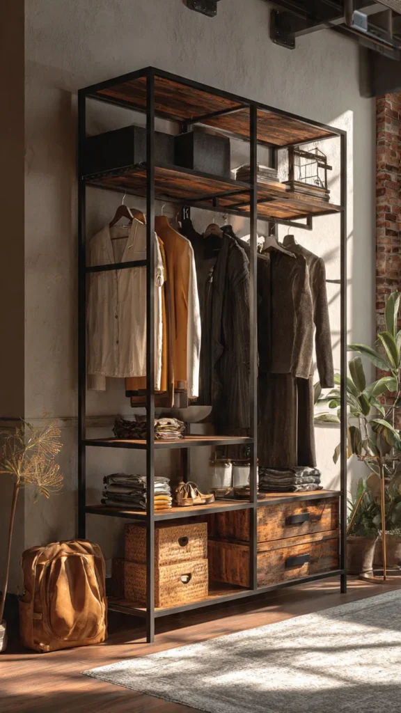 Industrial-style wardrobes are bold, modern, and highly functional. A metal frame wardrobe is perfect for urban apartments, loft-style homes, or anyone who loves a raw, edgy look.