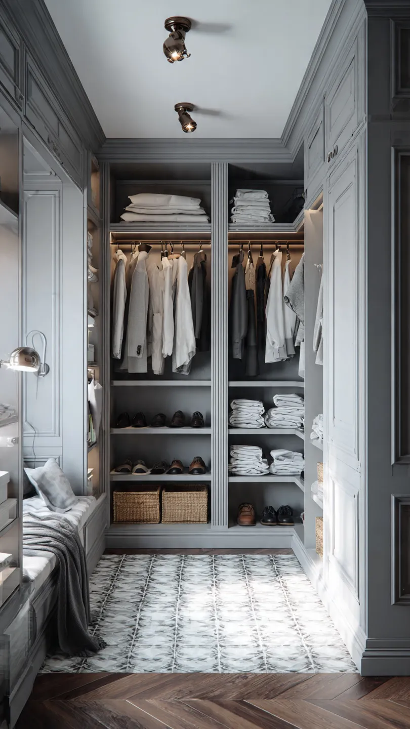To keep the look polished, use matching hangers, storage boxes, and a consistent color palette. Adding curtains or sliding panels gives flexibility when you want to hide clutter.