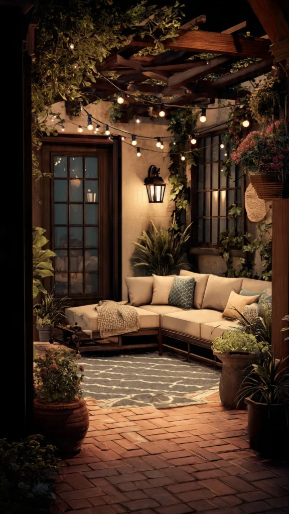 Outdoor string lights, solar lanterns, and built-in LED strips can extend patio usability into the night. I cannot stress enough how much lighting elevates the atmosphere. Soft, warm lights make your evenings outdoors magical.