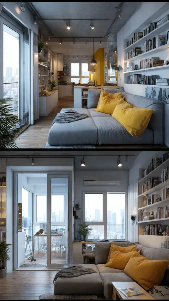 Smart design is the foundation of every tiny apartment makeover. The key is to think vertically, visually, and functionally. Start by choosing a neutral color palette such as whites, soft greys, or beige tones. These shades reflect light, making your apartment feel larger and brighter.