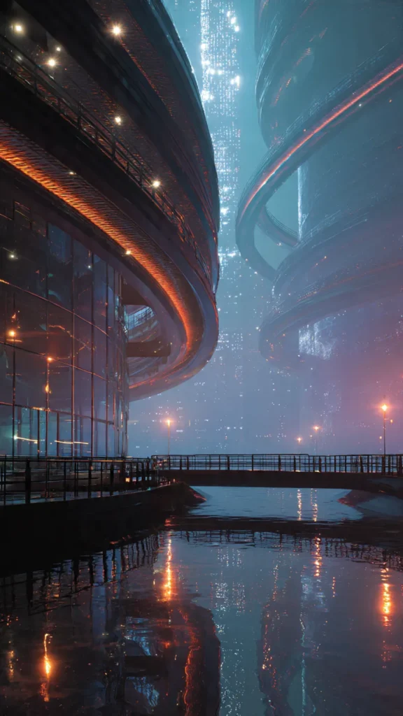 - Futuristic color palettes (neon, chrome, electric cyan)
