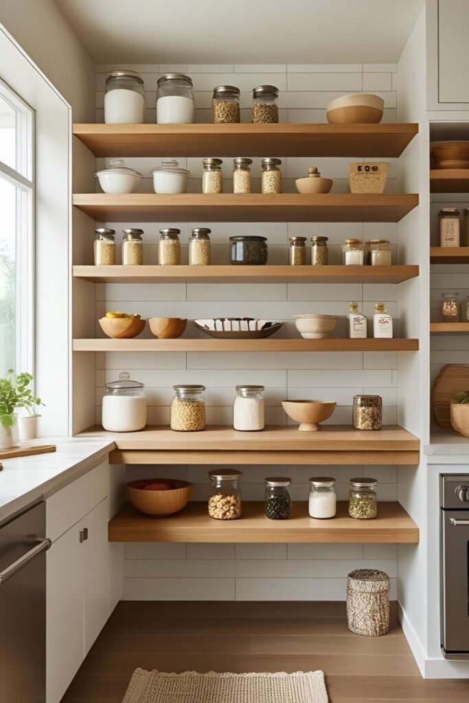 - Custom shelving: Adjustable shelves keep the space flexible.