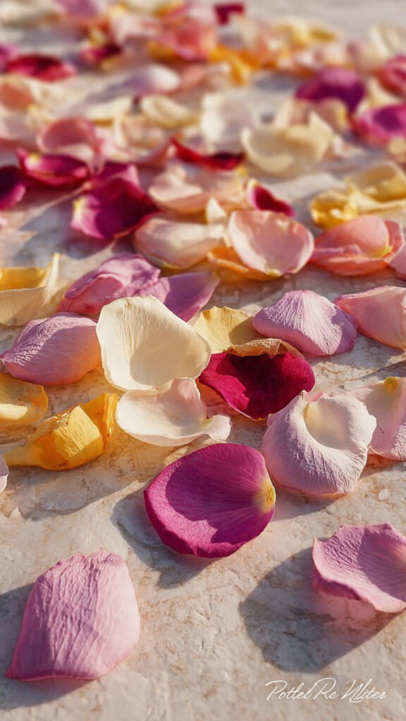 Scattered rose petals are a timeless and simple way to elevate romantic décor. Use them on tables, floors, or along pathways to guide guests and create intimate settings.