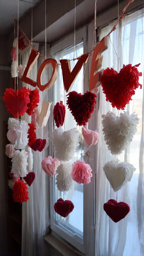 Heart-shaped balloon garlands are decorative arrangements of balloons in red, pink, and white that can frame doorways, mantels, or photo backdrops for instant romantic impact. - How can velvet throw pillows enhance Valentine’s Day décor?