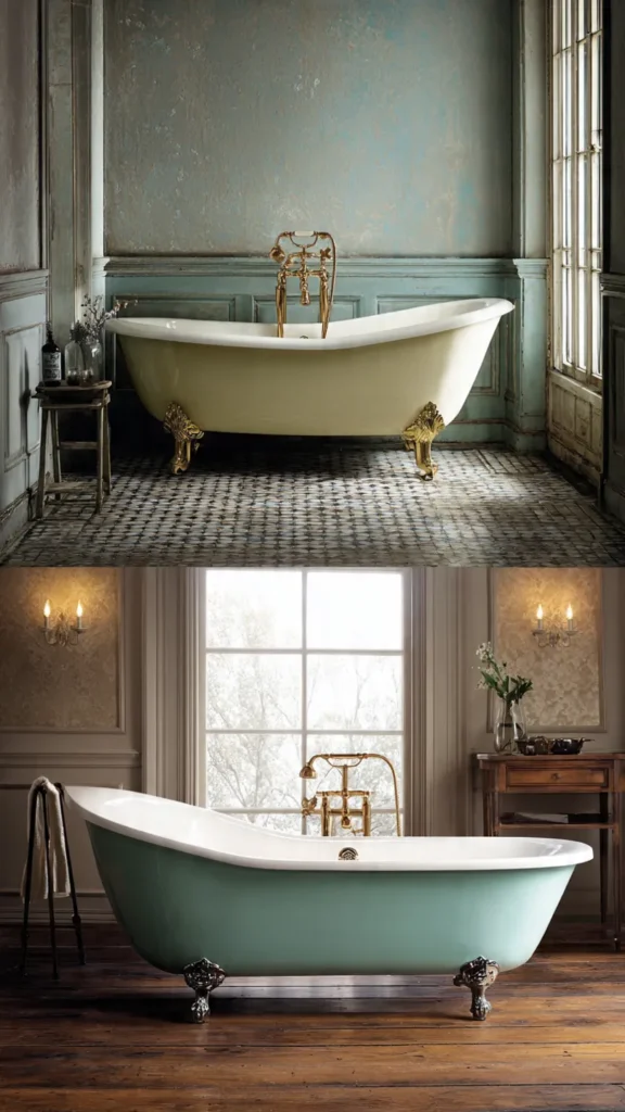 If there’s one hallmark of vintage bathroom design, it’s the clawfoot bathtub. I installed a freestanding clawfoot tub with antique brass feet in my home, and it instantly became the centerpiece. It not only feels luxurious but also brings back that early 20th-century charm.