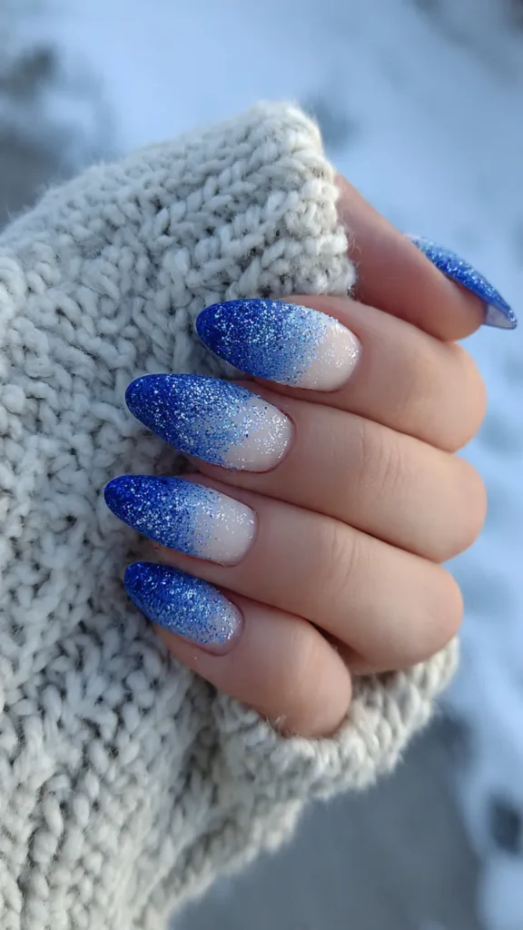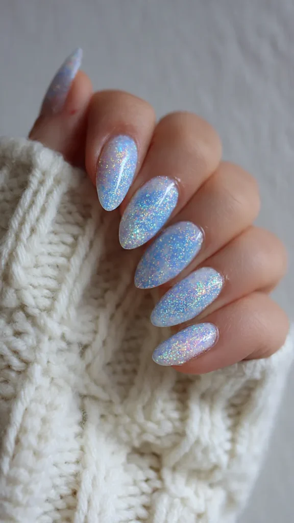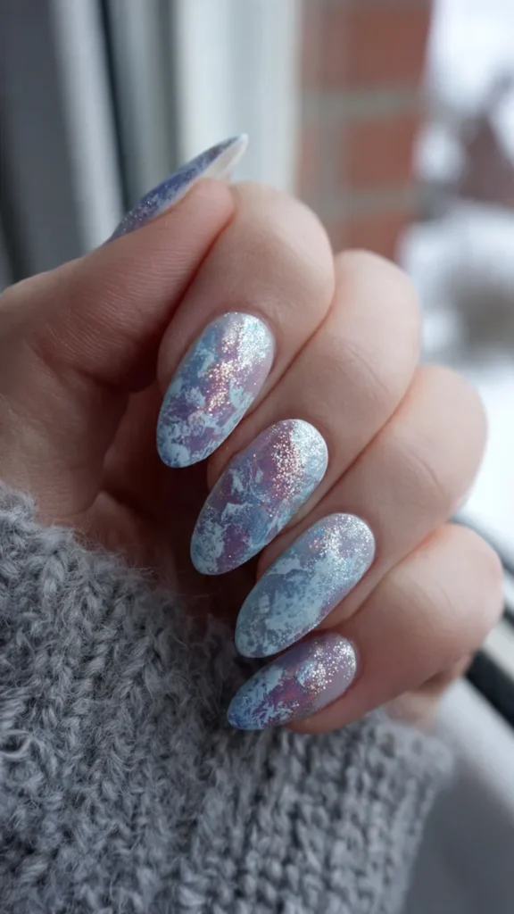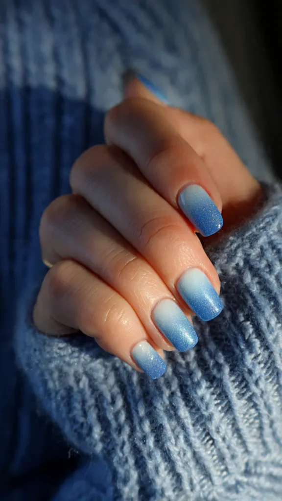 Frosted blue nails are especially popular for parties and seasonal photo shoots.