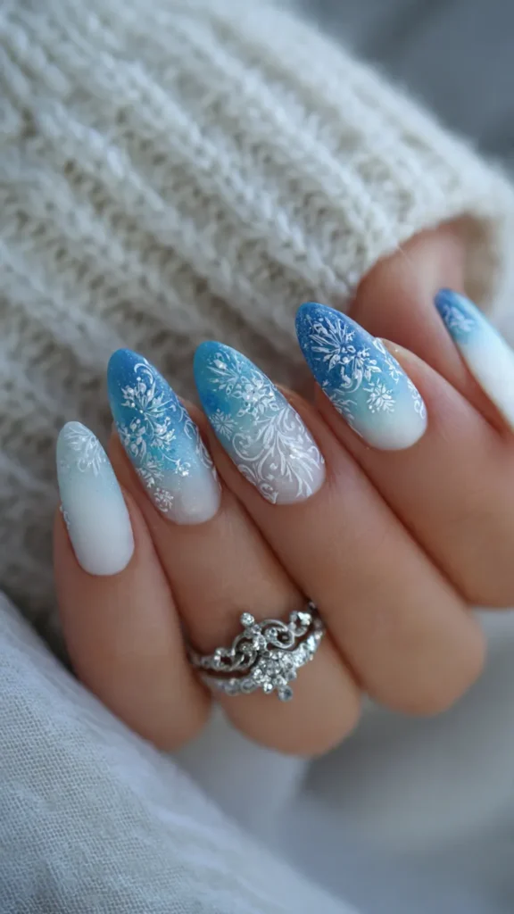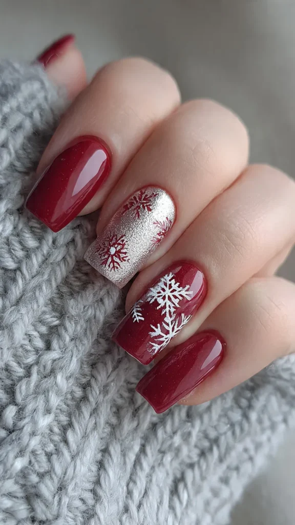 Snowflake nails are ideal for both casual winter looks and formal holiday events.