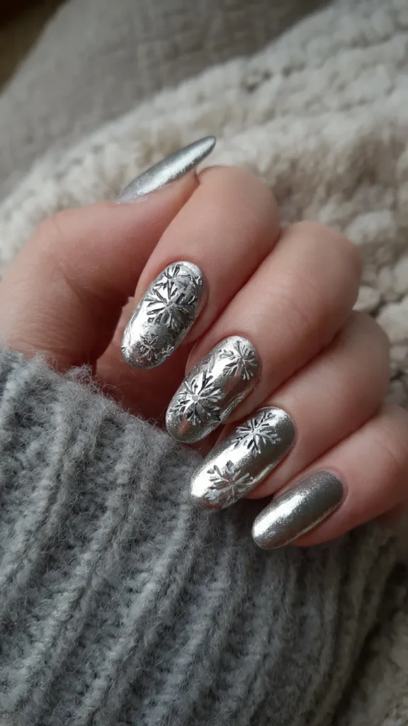 Silver nails are the epitome of sophistication in Winter nails art. They pair beautifully with snowflakes, frosted patterns, or minimalistic designs.